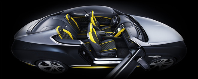車輛內(nèi)飾延續(xù)了定制的主題顏色,座椅同樣采用了百年靈標(biāo)志性的黃色。