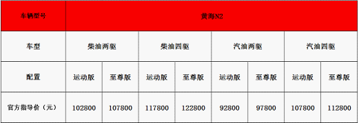 這款顛覆性的國際化產品,無疑為國內高端全尺寸越野皮卡注入了新鮮血液,告訴那些喜歡美式范兒卻又買不起“猛禽”的消費者,其實你們還可以選擇黃海N2。目前,黃海N2已在全國范圍開展銷售,其提供兩款發動機8種車型供消費者購買,分別為兩驅/四驅柴油運動版、至尊版以及兩驅/四驅汽油運動版、至尊版。