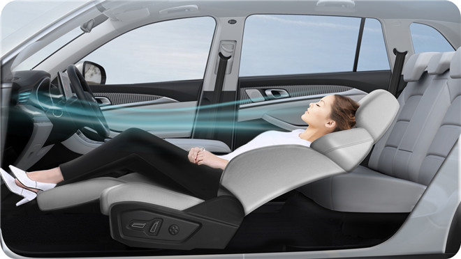 尤其是全新的“健康車生活”概念,天美ET5全球首創(chuàng)的健康午休睡眠系統(tǒng),為眾多為生活事業(yè)奮斗打拼的人們,提供了一個家之外的,有尊嚴(yán)的小憩空間。用戶只需輕觸車機(jī)屏幕,打開“健康午休”模式,就能在10向電動調(diào)節(jié)座椅上來個徹底的放松。而為了給用戶提供更健康的午休環(huán)境,天美ET5還配備PM2.5,高效空調(diào)濾芯、負(fù)離子凈化器,與高溫循環(huán)消毒系統(tǒng),打造森林級的清新空氣。