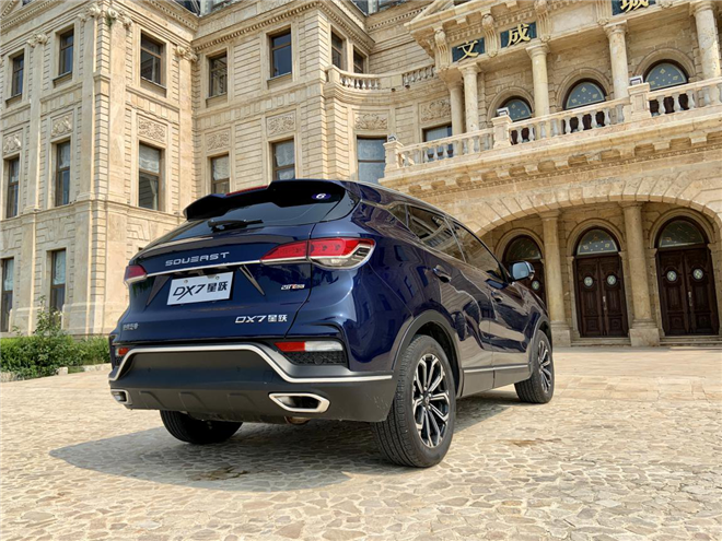 全新DX7星躍的車身側面與現款車型保持了一致。但值得注意的是,DX7星躍取消了現款車型前翼子板上那個毫無作用的假散熱孔,一條利落的線條貫穿全車,連接前臉與兩側尾燈,瞬間提升整車的立體感及線條律動感。