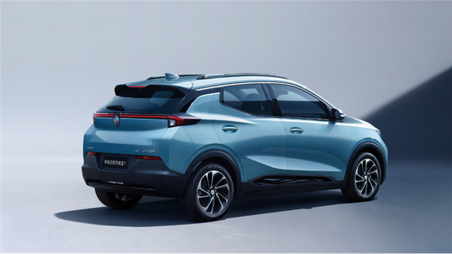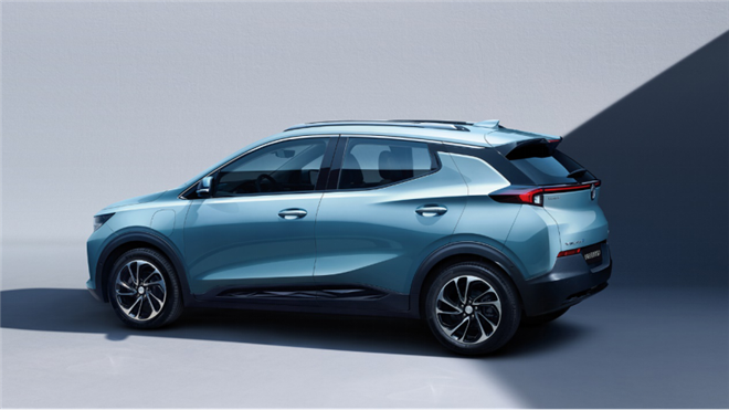 車身側(cè)面的設(shè)計(jì)與別克昂科拉GX十分相似,但凌厲的線條襯托出更強(qiáng)的設(shè)計(jì)美感。車側(cè)的設(shè)計(jì)總體上還是以年輕運(yùn)動(dòng)為總基調(diào),一條凌厲的腰線自前大燈出發(fā),一直延伸到后門板處,與車尾燈延伸出的線條形成了錯(cuò)位的效果,具有很強(qiáng)的運(yùn)動(dòng)屬性。而車側(cè)最讓人注意的當(dāng)屬前翼子板位置的充電插口,快充口與慢充口都集成在了左側(cè)翼子板上,且充電時(shí)VELITE 7字樣的呼吸燈會(huì)閃爍,營造出極強(qiáng)的科技感。