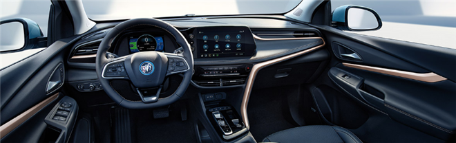 坐進(jìn)車內(nèi),可以發(fā)現(xiàn)Velite 7整個(gè)內(nèi)飾的設(shè)計(jì)依舊是別克經(jīng)典的家族式風(fēng)格,大量皮質(zhì)和軟性材料的包裹,營造出很強(qiáng)的豪華感,而環(huán)抱式的內(nèi)飾布局,則很好的調(diào)動(dòng)了駕駛員的駕駛積極性。配置上,Velite 7搭載了8英寸液晶儀表盤和10英寸觸控式液晶屏,中控屏內(nèi)置eConnect互聯(lián)系統(tǒng),涵蓋Carplay、導(dǎo)航、OTA升級等眾多時(shí)下流行的配置,完全滿足消費(fèi)者對智能化的需求。要說整個(gè)車內(nèi)最傳神的設(shè)計(jì),當(dāng)屬方向盤上別克車標(biāo)的藍(lán)色包邊,將整臺車的新能源屬性很好的調(diào)動(dòng)了起來,完全是點(diǎn)睛之筆。