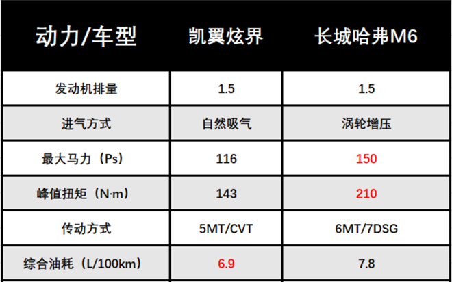 在動(dòng)力方面,凱翼炫界搭載1.5L自然吸氣發(fā)動(dòng)機(jī),匹配5速手動(dòng)或CVT變速箱,最大馬力116Ps,峰值扭矩143N·m,自吸發(fā)動(dòng)機(jī)搭配CVT的動(dòng)力組合,平順性表現(xiàn)極佳,而且動(dòng)力表現(xiàn)足夠滿足日常使用需要。而哈弗M6搭載了1.5T渦輪增壓發(fā)動(dòng)機(jī),匹配6速手動(dòng)或7速雙離合變速箱,最大馬力150Ps,峰值扭矩210N·m,雖然動(dòng)力表現(xiàn)更好一些,但是行駛的平順性相對(duì)遜色一點(diǎn),尤其是起步階段,換擋頓挫還是比較明顯,對(duì)駕駛舒適性有不小的影響。