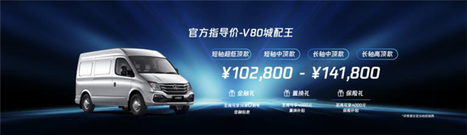 8月28日,上汽大通MAXUS旗下高階純電輕客EV90、V90運杰版、V80 PLUS城市版與V80城配王“四箭齊發”,同時覆蓋了新能源車領域與傳統燃油車領域,以卓越優質的產品再次增強了輕客家族競爭力,持續引領輕客行業標準升級。價格方面,高階純電輕客EV90貨運版起售價219,000元,V90運杰版起售價149,800元,V80 PLUS城市版起售價139,800元,V80城配王起售價102,800元。此外,上汽大通MAXUS還傾情推出金融禮、保險禮以及置換禮等多重購車優惠禮遇,購V90運杰版、V80 PLUS城市版享至高6000元保險補貼、至高5000元金融貼息及至高4000元置換補貼;購V80城配王暢享至高18期0利率金融貼息、至高4000元保險補貼和至高4000元置換補貼。值得一提的是,上汽大通MAXUS還特別推出“包牌價”,99,900元即可開走V80城配王。此外,新車發布會現場,上汽大通MAXUS還為用戶準備了“彩蛋”,即推出388臺V80 PLUS城市版來現場搶購,并在短短80秒內迅速售罄,實力印證了上汽大通MAXUS旗下產品的超高人氣。