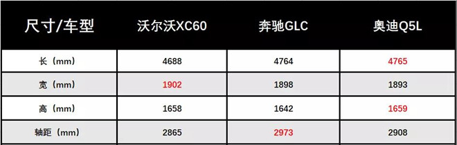 在空間表現(xiàn)上,三款車也有一定的差距。沃爾沃XC60的長寬高為4688*1902*1658mm,軸距為2865mm;奔馳GLC的長寬高為4764*1898*1642mm,軸距為2973mm;而奧迪Q5L的長寬高為4765*1893*1659mm,軸距為2908mm。從尺寸數(shù)據(jù)上看,沃爾沃并不占優(yōu)勢,但是在實(shí)際空間體驗(yàn)上,三款車的表現(xiàn)相差不大。而且在座椅舒適度表現(xiàn)上,奔馳和沃爾沃要領(lǐng)先奧迪不少。在儲物空間上,三款車的表現(xiàn)相差不大,而且三款車后備箱的空間表現(xiàn)也足以滿足日常的家庭使用。
