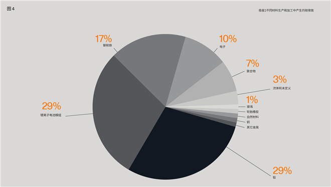 極星2不同材料生產和加工中產生的碳排放