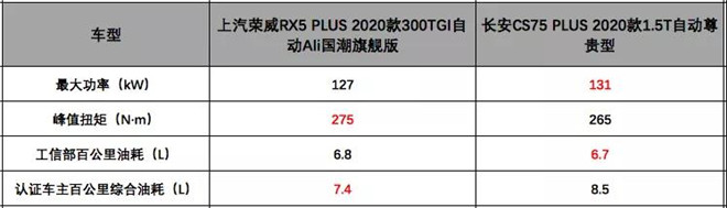 除了保養費用,日常的油費開銷占大比重,哪款兼具性能與經濟性呢?可以發現,兩款車均搭載1.5T發動機,長安CS75 PLUS最大功率以微弱優勢領先,不過榮威RX5 PLUS的峰值扭矩也當仁不讓的扳回局面。