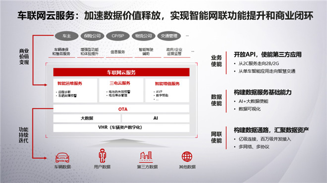 聚焦在網聯使能、數據使能和業務使能三方面,幫助構建一個人、車、環境互聯的世界。