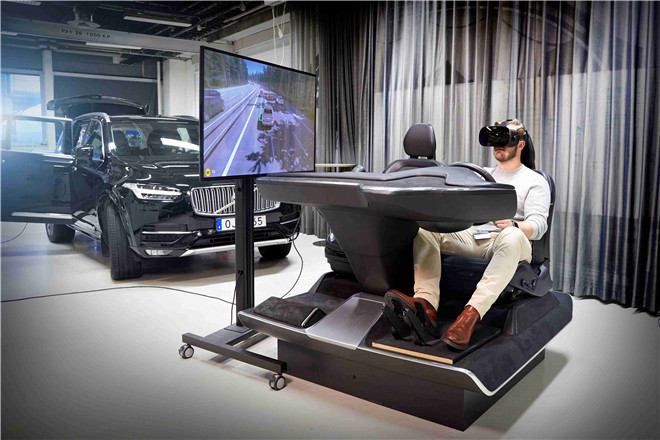 可移動駕駛席、帶觸覺反饋方向盤以及清晰虛擬現實頭戴式顯示設備(以下簡稱“頭顯設備”),會讓任何一個游戲老手羨慕。而沃爾沃汽車的駕駛模擬裝置將這種概念提升到一個新的水平,讓人很難分清現實與虛擬。這才是重點。