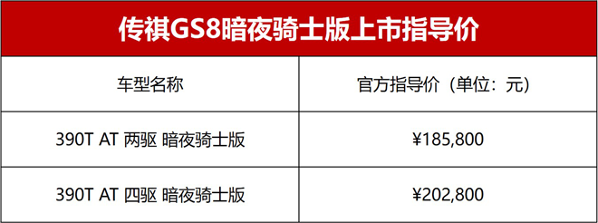 今天,顏值與內涵兼具的傳祺GS8帶著它的新皮膚來了,傳祺GS8暗夜騎士版于今日正式上市。硬核豪華再升級,傳祺GS8暗夜騎士版新增熏黑外觀打造魅黑造型,以更時尚個性的魅黑造型滿足年輕消費群體的需求,并提供兩驅版本和四驅版本車型供消費者選擇,其中暗夜騎士兩個版本的售價與豪華智聯版車型保持一致。同等價格同等配置,加上如此酷炫的外觀,你被它迷惑了嗎?