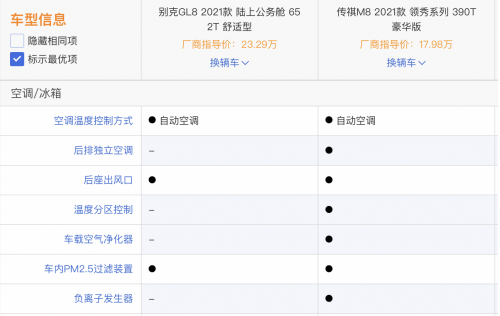 除了乘用空間和內部氛圍之外,用戶對于MPV的車型配置同樣重視。作為20萬豪華MPV市場最熱銷的兩臺車型,傳祺M8和GL8的質價比都十分出色,但兩者相比還是有所不同的。對比兩臺車入門版車型的配置,即可見端倪。