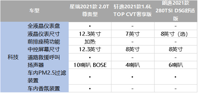 既然是15萬級家轎,消費者還是比較注重舒適便捷的愉悅體驗。而在這方面的配置上,同樣是星瑞和軒逸領(lǐng)先,朗逸比較落后,許多流行的舒適配置都沒有,甚至連無鑰匙啟動和電動座椅調(diào)節(jié)也沒有配備,有點讓人失望。而星瑞又比軒逸多出了車內(nèi)香氛系統(tǒng)和前排座椅加熱功能,堪比30萬級家轎品質(zhì),果然是“中國家轎顛覆者”,為用戶帶來了超越期待的豪華享受。