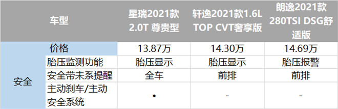 首先,從用戶出行安全的角度來比較,擁有胎壓顯示的星瑞和軒逸無疑比只有胎壓報警功能的朗逸更加全面一些,而吉利星瑞在主動安全方面的配置更是遠超兩者。在中汽研C-NCAP碰撞測試中,星瑞獲評五星級安全標準,其中主動安全評價得分率為98.95% 位列同批次車型第一,帶給用戶滿滿的安全感。