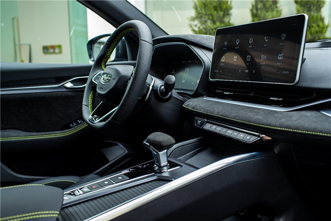與朗逸、軒逸相比,吉利星瑞的內(nèi)飾大為不同。不管是游艇藍/高級灰內(nèi)飾還是極夜黑內(nèi)飾,都給人一種充滿年輕活力的時尚感,且科技范十足。在時空版車內(nèi),不僅可以感受到大面積的皮質(zhì)包裹搭配意大利Alcantara翻毛皮材質(zhì)所帶來的舒適感,更能體驗到遍布周身的豪華感。12.3英寸的液晶儀表和同等尺寸的懸浮式中控液晶觸控屏,顯示清晰,造型簡約,極具科技感,讓用戶時刻感受到科技時代氣息,非常符合當下年輕人的審美。
