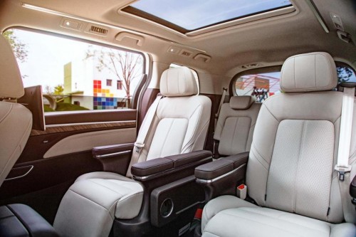 M8二排擁有同級(jí)功能更全頭等艙座椅,支持6向電動(dòng)調(diào)節(jié),助攻躺平的電動(dòng)腿托,座椅自帶加熱、通風(fēng)、按摩功能。扶手邊巧妙設(shè)計(jì)的小桌板剛好能存放手機(jī)、飲品,車(chē)內(nèi)32色幻變氛圍燈及高級(jí)音響為點(diǎn)綴氣氛,大師旗艦車(chē)型地板運(yùn)用質(zhì)感更高的黑胡桃木,所見(jiàn)之處均由軟質(zhì)包裹,下車(chē)時(shí)伴隨“星光大道”迎賓光毯的配合,整個(gè)二排打造出VIP休息空間,給予每位乘客貴賓級(jí)禮遇。