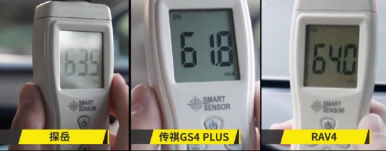 除了空間大之外,舒適性也是很重要的一點。尤其是在城市或高速行駛中,如果車內(nèi)能保持一個安靜的空間,對于駕駛者和乘客來說都是一個加分項。在80公里時速巡航過程中實測,傳祺GS4 PLUS錄得分貝61dB,比64dB的探岳和63dB的榮放RAV4都要來的安靜。