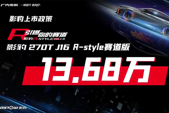 傳祺影豹 R-style 賽道版成功上市,售價13.68萬元!搭載鉅浪動力第三代1.5T GDI發動機,匹配7速高效濕式雙離合變速器,擁有零百加速6.95秒的戰績;傳祺影豹升級激情駕控,為年輕熱血而生!