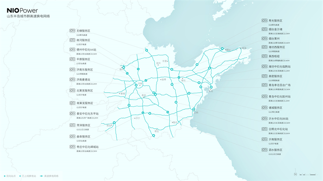 蔚來打通山東半島城市群高速換電網絡、吉林省高速超充網絡