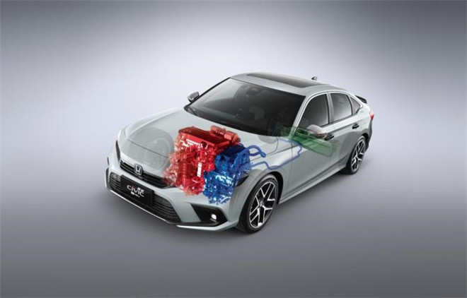 其中,2.0L Di(缸內直噴)阿特金森循環發動機空燃比范圍擴大,最大熱效率高達41%,最大扭矩達182N·m,配合最大功率135kW,最大扭矩315N·m的雙電機式E-CVT,使得第十一代思域 e:HEV的動力儲備更充沛,進一步彰顯了思域廣受認可的運動風范。