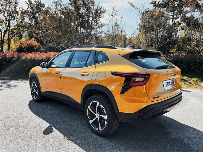 作為主打年輕的車型,星邁羅采用了全新的雪佛蘭家族設計語言,金色車身,X型雷霆前臉,黑色領結logo,加上各種黑色裝飾件,有很強的沖擊感。再配上RS套件,整體感受就是運動越野又不失時尚,比較符合現代人的審美。18寸RS曜黑柳葉刀輪轂、溜背設計、動態擾流尾翼加上X型尾部,低趴SUV的動感姿態,夠運動時尚。