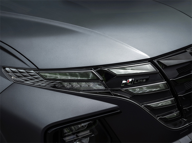 在當(dāng)下這個(gè)看臉的時(shí)代,高顏值車型往往令人眼前一亮,而途勝L N Line自設(shè)計(jì)之初便深諳其道。在外觀造型方面,途勝L N Line沿襲參數(shù)化設(shè)計(jì)主題,同時(shí)還傳承著現(xiàn)代汽車高性能N品牌的賽道基因,加入了更多細(xì)節(jié)化運(yùn)動(dòng)元素,如打造了235/55 R19專屬酷黑鋁合金輪轂,并在輪轂中間添加了標(biāo)志性的“N”字母元素,低調(diào)且吸睛。同時(shí),雙側(cè)單排氣管附著在車輛背面下端,后擾流板采用更明顯的銀色設(shè)計(jì),營(yíng)造出獨(dú)具特色的運(yùn)動(dòng)氛圍。