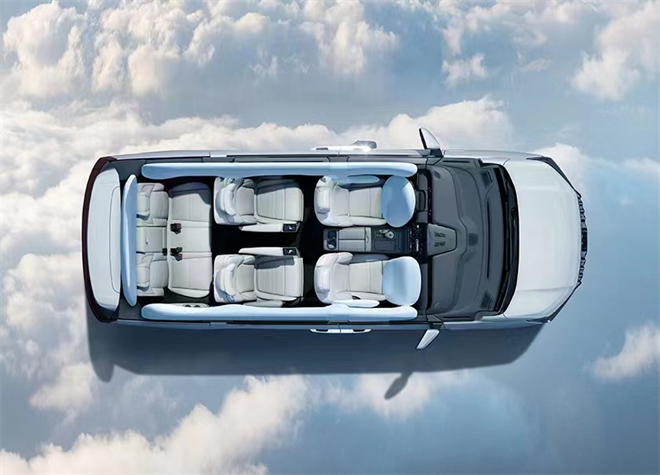 第二排為高級頭等艙,全自動半苯胺高級真皮座椅,自帶一鍵SPA模式,實現對氛圍燈、空調、香氛及座椅放倒聯動調節。創新設計的無風感健康空調,潤物細無聲地照顧到老人和小孩易感人群,成為一家老小、高端商務出行、長短途出游的宜家宜商之選。