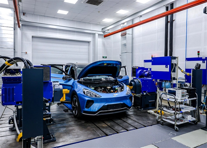 對于新能源汽車而言,高能效電驅總成是關鍵技術。在北汽藍谷整車驗證中心內,通過高效率的全自動化工具電控測試、多維整車環境耦合等效的臺架測試檢測關鍵技術,大幅提升開發效率。在三電技術方面,極狐汽車借助驗證中心提高了電機效率、回收效率及電池能量密度;同時掌握高安全電池電控關鍵技術,實現了熱失控預警、熱失控抑制及數萬組件毫秒級的電控功能安全管控。
