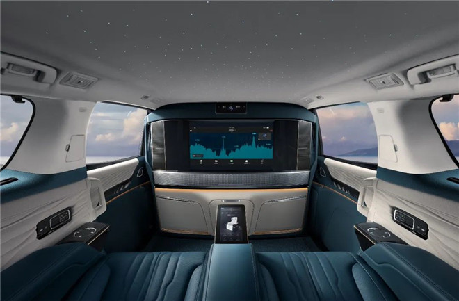 具體來看,別克世紀四座版,本質上是有專屬司機的移動空間。以豪華智慧幕墻系統、160度云感座椅、流星雨星空穹頂和山水鎏銀真木飾件所構成的空間,已經超越了一臺高端MPV本身的屬性。