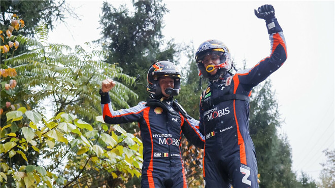 激情馳騁、縱橫穿梭。在4天賽程中,現代汽車WRC車隊依托高性能賽車和優秀車手的出色發揮,激情飛馳于密集彎道,最終車手諾伊維爾贏得2022賽季WRC日本站比賽第一名,并以累計得分193分的成績排名車手積分榜第三位;泰納克本站搏得本站第二名,同時以累計得分205分的成績排名車手積分榜第二位。