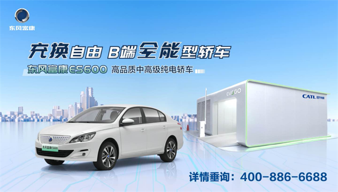 東風富康ES600換電版搭載寧德時代三元鋰“巧克力”換電塊,新車續航410km,可實現充換自由,快捷補能,換電僅需3分鐘,實現加電比加油更方便。在車電分離的模式下,東風富康ES600換電版的車主可以通過遍布全國的EVOGO服務網絡,以更低廉的使用成本,享受到全天24小時不間斷的換電服務,以及更為便捷可靠的移動電能解決方案和服務。