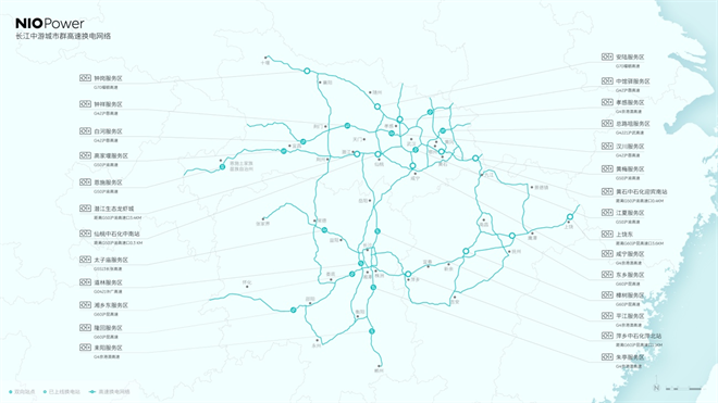11月20日,蔚來正式打通長江中游城市群高速換電網絡。該網絡共布局42座換電站,覆蓋G4京港澳、G42滬蓉、G50滬渝、G60滬昆、G70福銀等多條高速公路,極大提升用戶加電便利性。