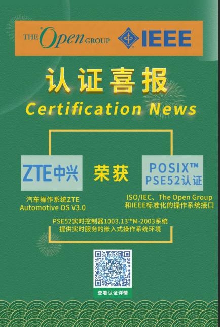 近日,中興通訊旗下產品——車用微內核操作系統ZTEAutomotiveOSV3.0正式通過POSIX™規范PSE52實時控制器1003.13™-2003系統(PSE52Realtime Controller1003.13™-2003System)認證,成為國內首家獲得此認證的企業。