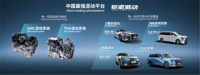 混動技術層面,依托十余年技術積淀,廣汽傳祺鉅浪混動通過開放合作的THS系統與自研的GMC混動系統,成為唯一擁有雙技術路線的品牌,并賦能于產品,推出鉅浪混動四大王牌車型矩陣,包括全新第二代GS8雙擎版、影豹混動版、影酷混動版及M8宗師系列混動版,實現唯一全序列混動車型覆蓋。