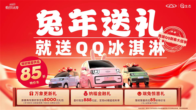 恰逢奇瑞新能源“愛的大禮物 Q樂過新年”新春大促活動火熱進行,多重好禮超值享,新春購奇瑞小螞蟻&奇瑞無界Pro限時享至高萬元禮包,首付低至1888元起,至高60期超低利率;新春購奇瑞QQ冰淇淋限時享至高8000元禮包,更有限時限量85折特價車,多重優(yōu)惠福利,有效降低購車門檻,輕松購車無憂出行,在新的一年開啟幸福快樂新旅程。