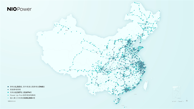 截至2023年2月7日,蔚來在中國市場已累計建成換電站1,313座、充電站2,327座(充電樁13,674根),接入第三方充電樁超63萬根,累計為用戶提供了超1,700萬次換電服務。蔚來將持續布局“可充可換可升級”的全場景能源服務體系,為用戶提供更便捷、舒適的出行體驗。