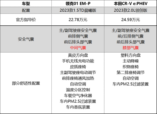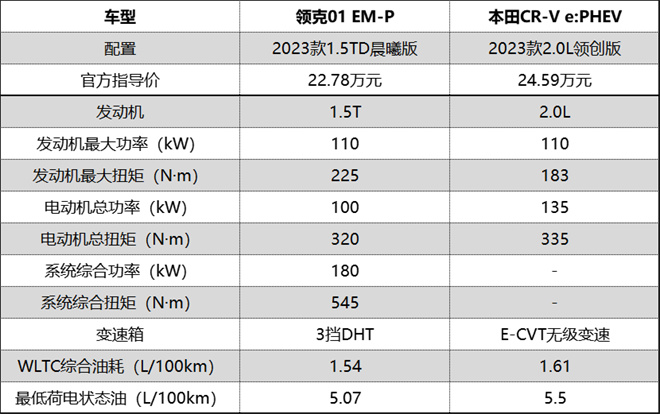 近幾年,新能源汽車市場利好不斷,吸引了大批消費者主動選購,特別是補能方便、無里程焦慮的插混車型。而在20萬級SUV市場,領(lǐng)克01 EM-P和本田CR-V e:PHEV兩款熱門車型讓人舉棋不定,為此小編通過橫向?qū)Ρ?2.78萬元的領(lǐng)克01 EM-P 23款1.5TD晨曦版和24.59萬元的本田CR-V e:PHEV 23款2.0L領(lǐng)創(chuàng)版,為用戶提供詳盡的購買參考。