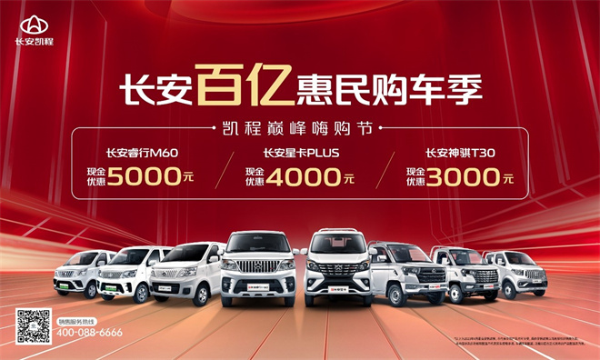 作為長安商用車業務戰略的承載者,長安凱程緊隨長安汽車“長安百億惠民購車季”步伐,在商用車領域率先出擊,重磅推出“凱程巔峰嗨購節”活動,旗下多款明星產品:長安睿行M60、長安星卡PLUS、長安神騏T30,最高現金優惠5000元,買到就是賺到,創業老板們直呼真香!