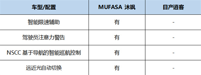 全家出行,什么最重要?當然是出行安全,這可以說是重中之重。雖然同樣是合資緊湊級SUV,但MUFASA 沐颯的智能安全性要更好,配備了很多逍客沒有的功能,例如智能限速輔助、駕駛員注意力警告、NSCC基于導航的智能巡航控制、遠近光自動切換等,就拿NSCC基于導航的智能巡航控制來說,當車輛在定速巡航條件下,即將進入高速或限速車道時,系統會基于導航自動識別區間測速攝像頭、限速標志,并可以自動調整車速到理想狀態,無需用戶調整,全程坐享巡航的便利。