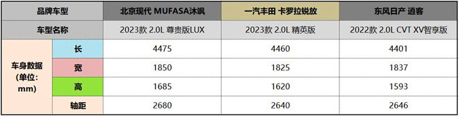為此,我們遵訓價格相近原則,選擇售價13.98萬元的北京現代MUFASA沐颯2023款2.0L尊貴版LUX(以下簡稱:沐颯),售價13.98萬元的一汽豐田卡羅拉銳放2023款2.0L精英版(以下簡稱:卡羅拉銳放),以及售價15.49萬元的東風日產逍客2022款2.0L CVT XV智享版(以下簡稱:逍客),看看北京現代MUFASA沐颯到底表現如何!