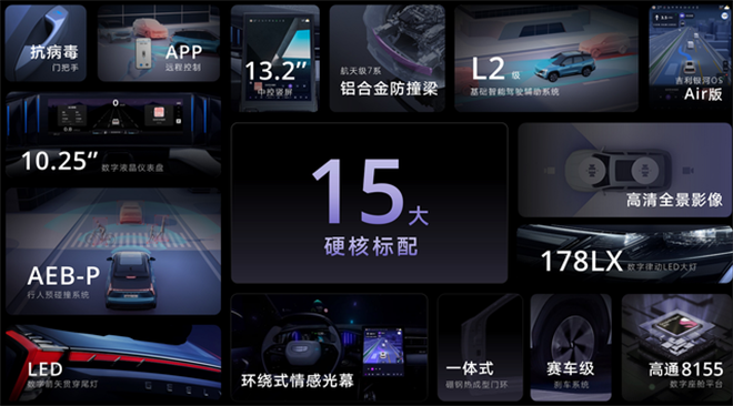 最后看安全方面,博越L全系標配L2級駕駛輔助系統(tǒng),并搭載30萬級車型才配備的NOA高階智駕領(lǐng)航輔助系統(tǒng),擁有5個毫米波雷達、12個超聲波雷達和6個攝像頭,硬件配置豐富讓你秒變老司機。再加上航天級的7系鋁合金防撞梁,安全駕駛更有保障。