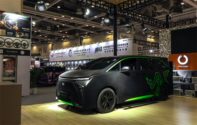 如今,電子競技作為一種新興的文化形態,正以暴風之勢席卷而來,并滲透到汽車改裝領域。本屆展會現場涌現出多款以電競為主題的改裝車型,而其中,最令人印象深刻的,莫過于合創V09 RAZER。