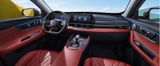 木蘭紅時尚潮流內飾彰顯車主高貴品味,與晶彩先鋒的設計搭配相得益彰。誰說汽車不能滿足你的所有幻想?24.6吋曲面雙聯屏同時搭配高端的SONY定制豪華音響,不僅要大,還要更加豪氣!LION5.0車聯網讓車機智能聯動,6個安全氣囊給你滿滿的安全感。1.1m²全景天窗讓美景盡收眼底,18吋晶面運動輪轂彰顯大氣。水晶鉆石換擋把手握感舒適,換擋絲滑平順,搭配防夾的四門車窗一鍵升降,一體式能量運動皮座椅與主駕座椅電動6向調節的搭配為乘者提供超一流駕乘感,樹立舒適標桿。