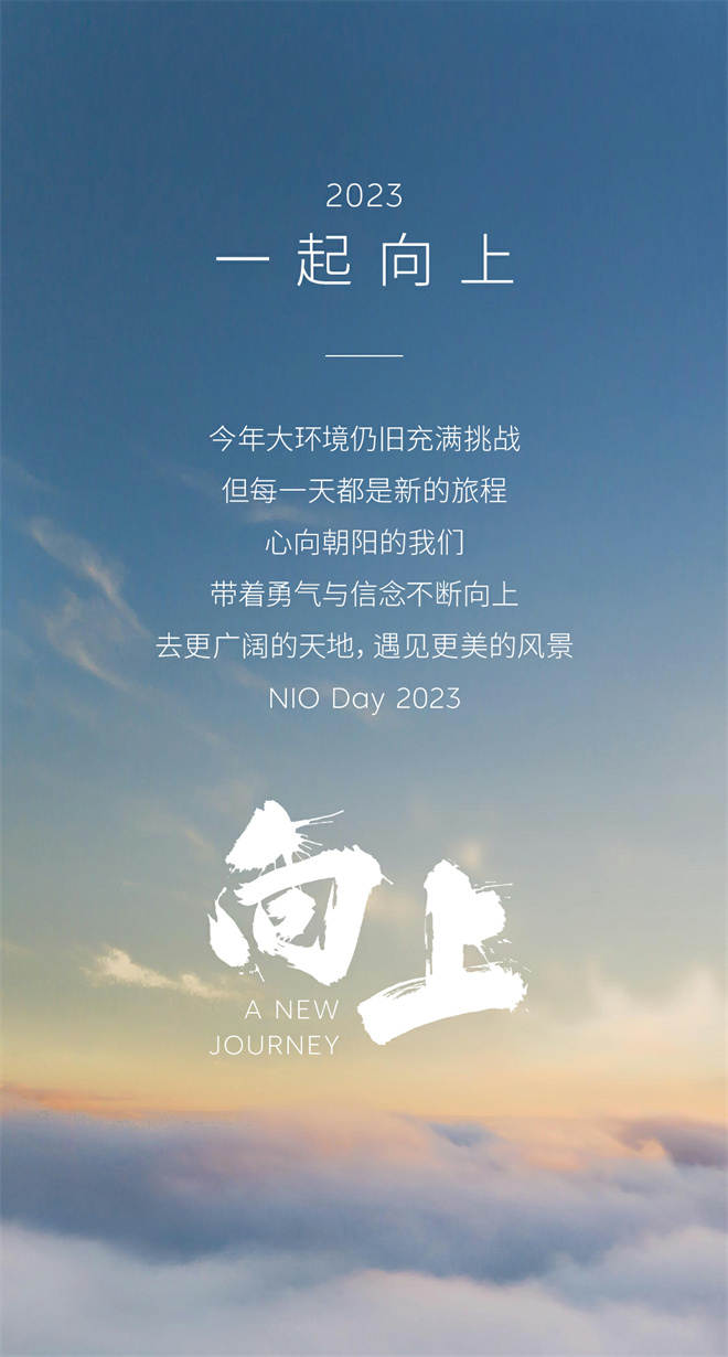 9月5日,蔚來公布2023年蔚來日(NIO Day 2023)主題——“A New Journey 向上”。