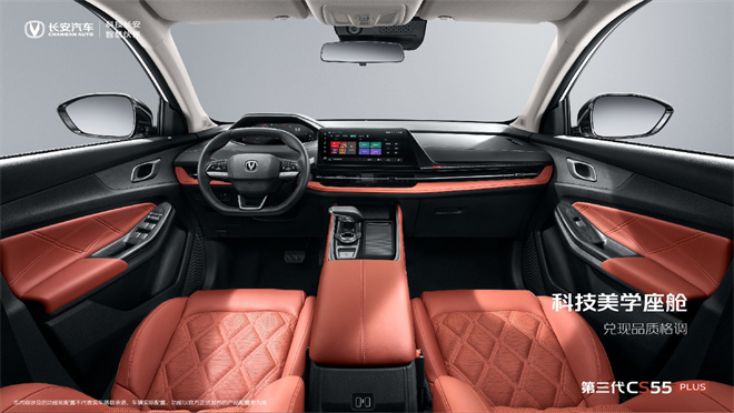 外表吸睛的同時,第三代CS55PLUS的內飾也頗有看點。延續“新科技智慧美學”,座艙采用科技輕薄的體量及型面設計,大面積軟質材料包裹和精致縫線提升視覺延展性;內飾配色組合煥新,滿鋪紅色體現越級豪華感,黑紅撞色凸顯運動性能感。