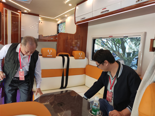 據(jù)現(xiàn)場介紹,賽吶威新品房車采用品牌江鈴福特底盤,自動變速箱,駕駛性能優(yōu)越,外觀設(shè)計突出干凈利落的現(xiàn)代感,在大額頭上創(chuàng)新使用正面超180°環(huán)形窗幕設(shè)計,打破市場其它車型額頭床空間逼仄、體驗(yàn)欠佳的痛點(diǎn)問題,是賽吶威房車設(shè)計的差異化亮點(diǎn),車尾兩側(cè)一字縱列組合尾燈,也是其利落現(xiàn)代感的設(shè)計體現(xiàn)。其房車內(nèi)部設(shè)計注重空間的極致利用和居住的舒適性,將睡眠、會客、衛(wèi)生、餐廚等生活空間動線打通,讓車上共享走動空間寬敞合理。上、中、下三層級立面空間收納系統(tǒng)收納柜,讓物品各有所歸,解決長期旅行置物困擾。舒適性方面,采用航空座椅靈活舒適、定制舒適床墊等。賽吶威房車還采用無梯上床的新式集成設(shè)計和頂裝太陽能光伏板的可持續(xù)節(jié)能設(shè)計,旨在為消費(fèi)者提供更多旅途便利。