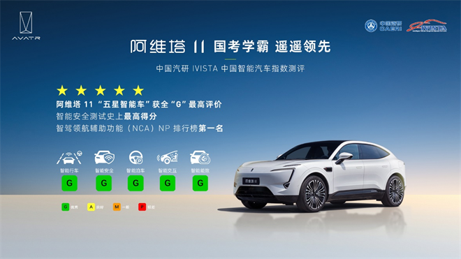阿維塔11榮獲IVISTA中國智能汽車指數五星智能評價