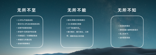 該車提供2.3T FEU汽油發動機和第五代PUMA2.3T柴油發動機兩種選擇。汽油發動機最大功扭190kW/450N·m,柴油發動機最大功扭130kW/ 450N·m,澎湃動力讓用戶無論翻山越嶺還是長途穿越都暢通無阻。