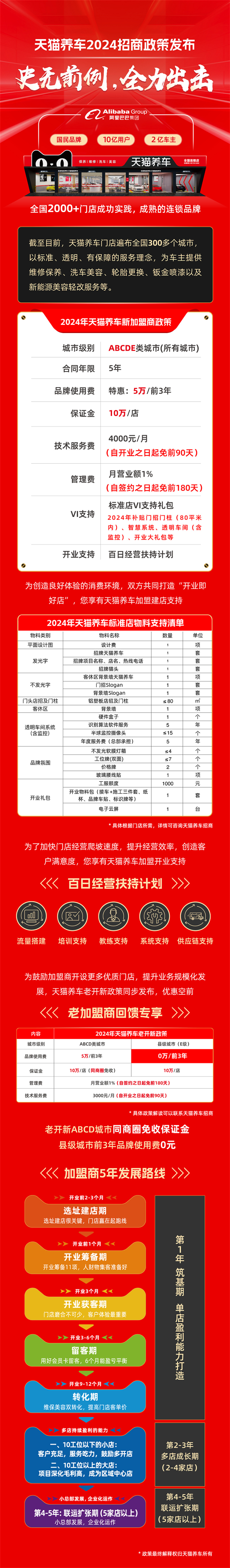 1月2日,天貓養車正式發布2024年招商政策,優惠史無前例。