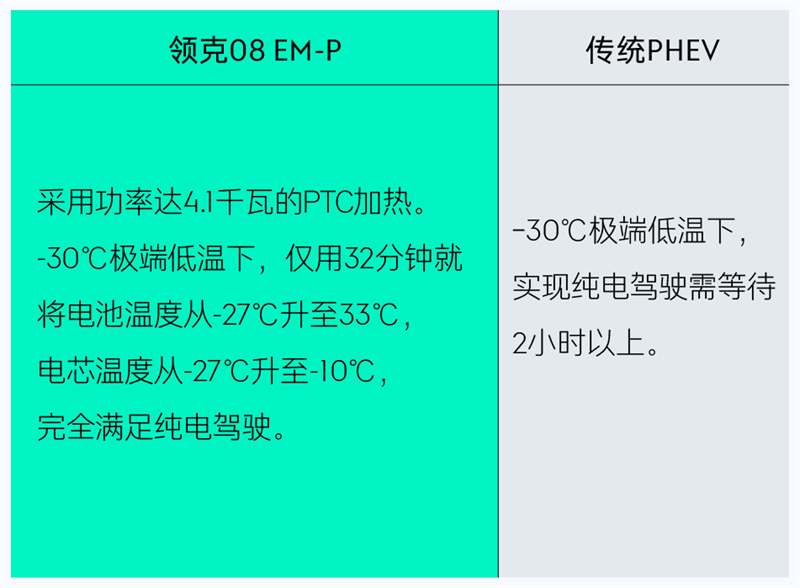 即便在-30°C極端低溫環境,也可在短時間內滿足純電駕駛條件,保障用戶在極寒條件下的純電續航里程。