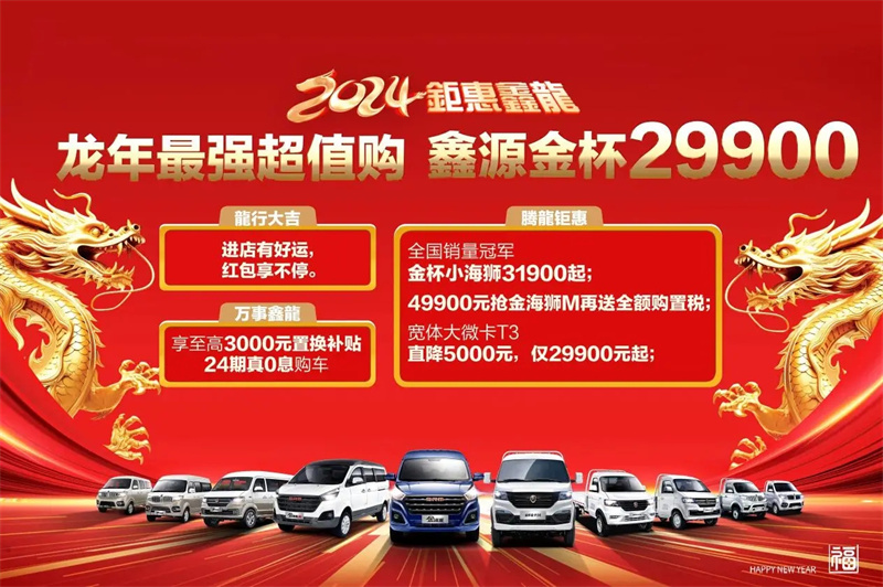 鑫源汽車更是推出旗下金杯T系列微卡、海獅系列微客、鑫源金卡系列等諸多暢銷車型。盼望著新的一年創(chuàng)業(yè)賺錢的車友,正是進(jìn)店購車、領(lǐng)新春紅包的好時(shí)機(jī)。